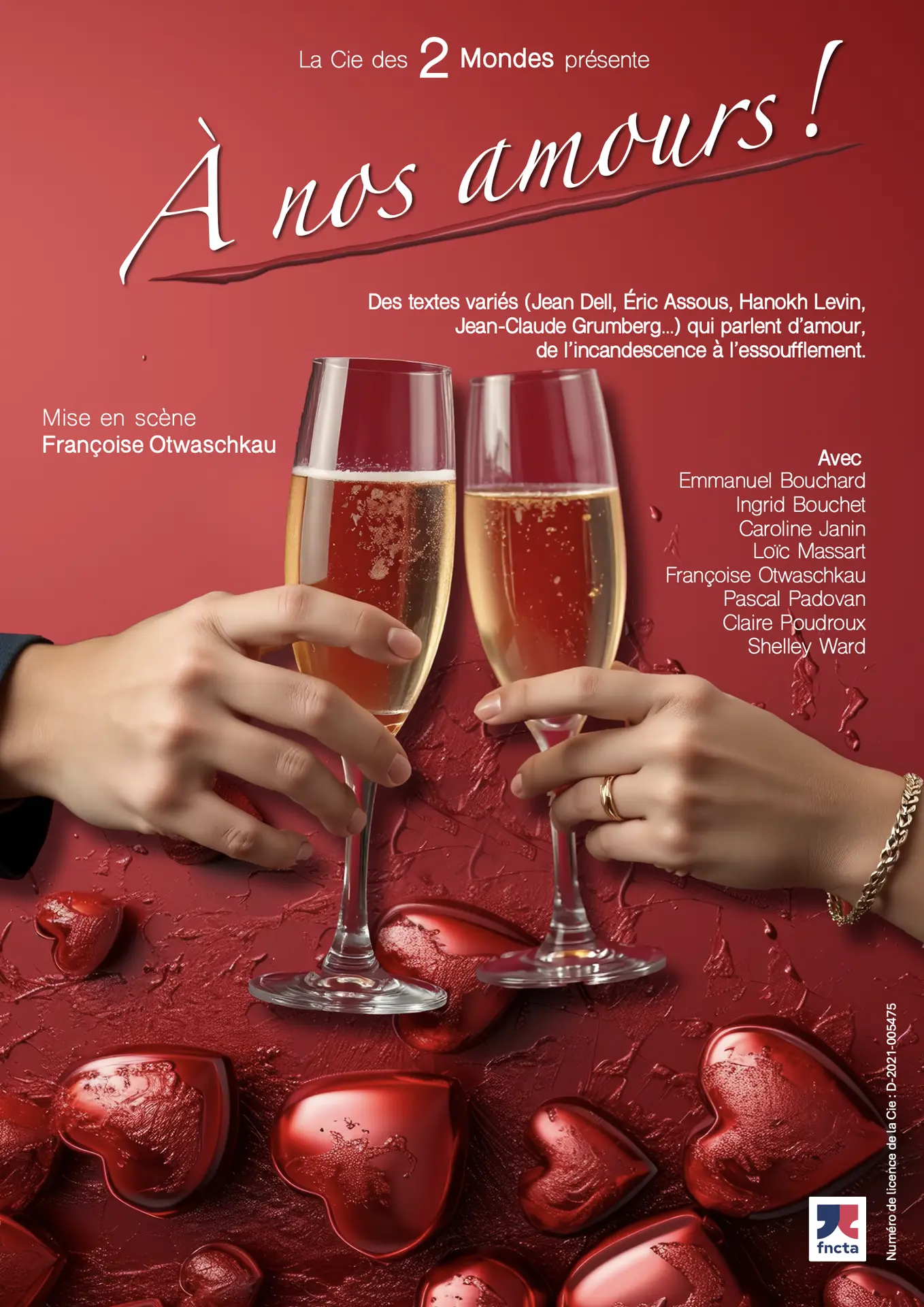 This show, based on a variety of texts, is about love, a universal subject par excellence. From incandescence to breathlessness. False notes, even cacophony within the couple, are not rare! All are welcome!