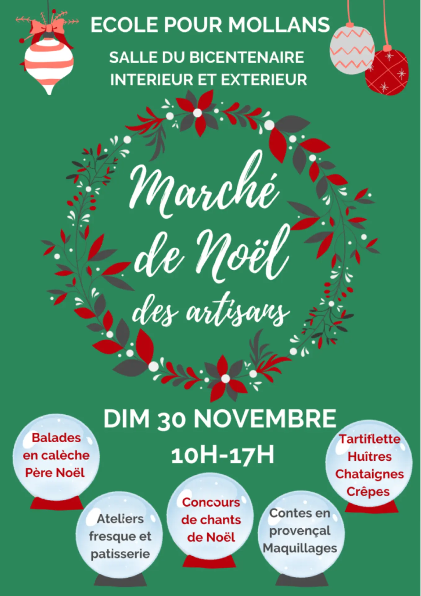 The Mollans school organizes a warm Christmas craft market, with horse-drawn carriage rides, gourmet workshops, singing competitions, Provencal storytelling and winter treats, to celebrate the magic of Christmas with the whole family.