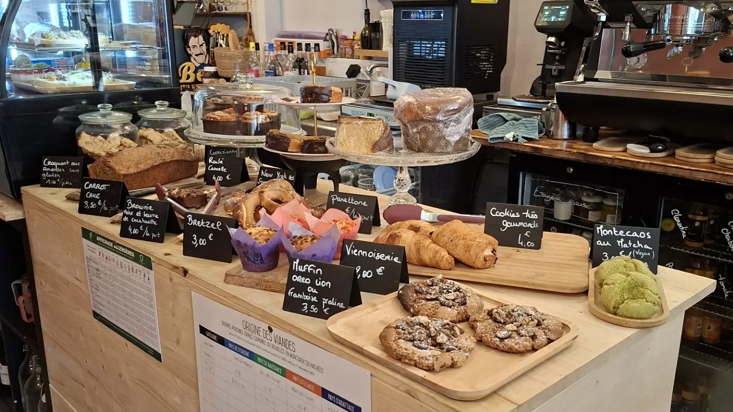 Enjoy hot and cold drinks, sweet and savoury snacks, on the spot or to take away. Enjoy the sunny terrace and original desserts for a moment of pleasure on Place Montfort. All-you-can-eat brunch every 1st Sunday of the month. Catering service available with crockery hire. Romain in the kitchen and Julie in the dining room offer you a warm welcome. Welcome to this friendly place!