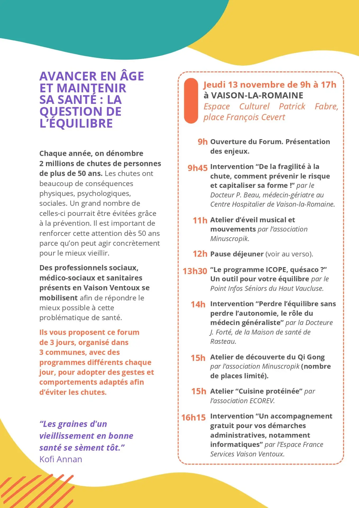 10:30 "What is the ICOPE program? A tool for your balance by the Point Infos Séniors du Haut Vaucluse.