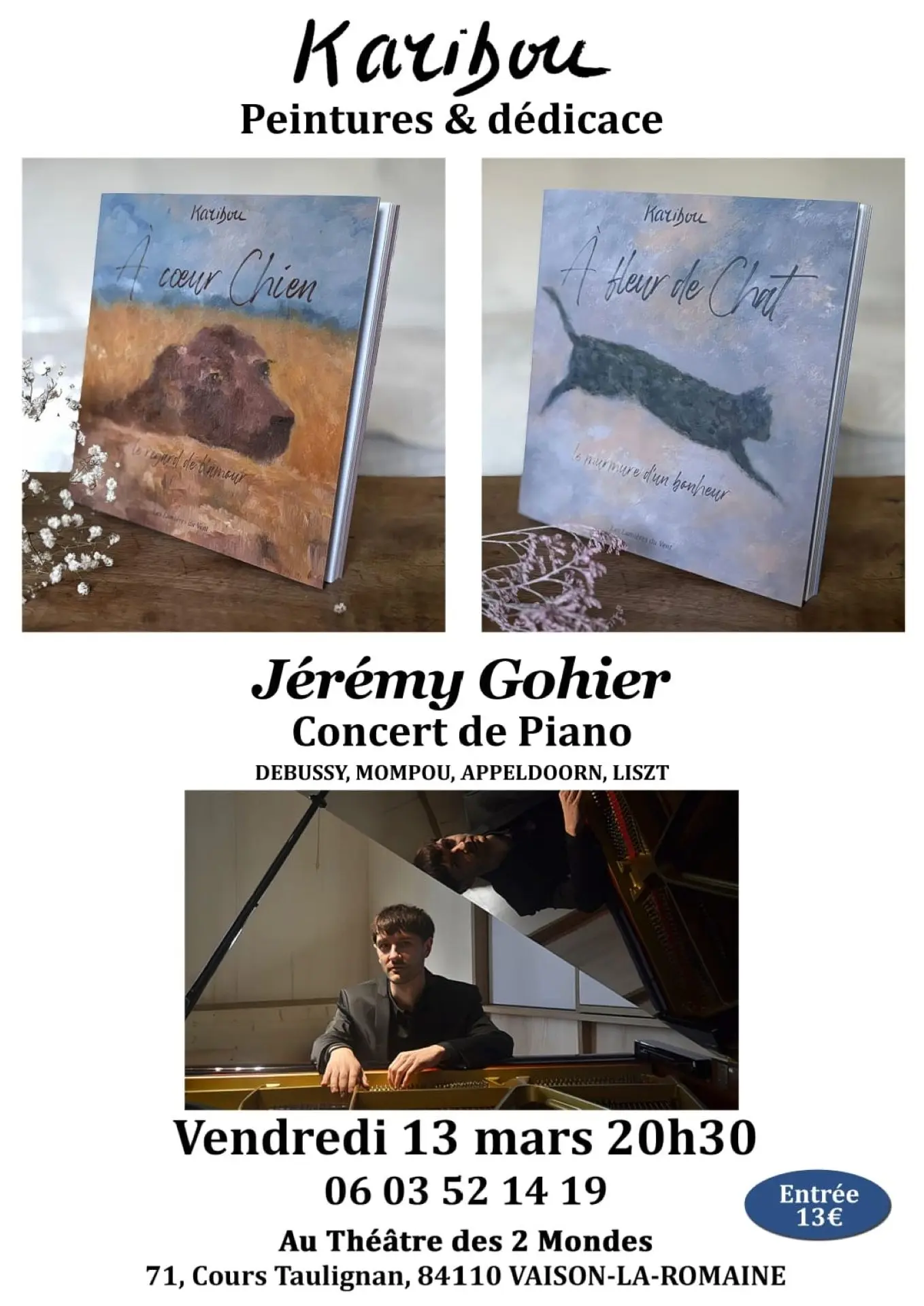 An artistic encounter between music and painting: a sensitive, poetic evening focusing on life and emotions. Painter Karibou and pianist Jérémy Gohier combine their worlds, where images and music meet.