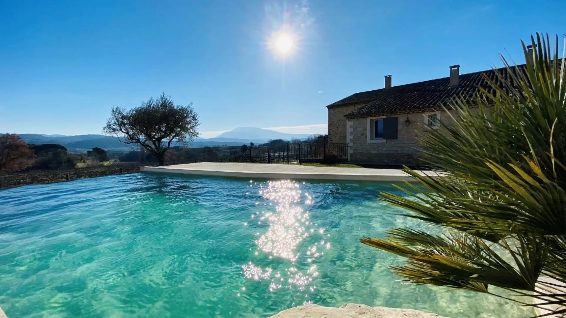 2 chambres d'hôtes and a gite in a stone bastide set in enclosed grounds planted with olive trees and featuring a pool and infinity pool. Close to shops. 22km from A7 freeway exit (Bollène).