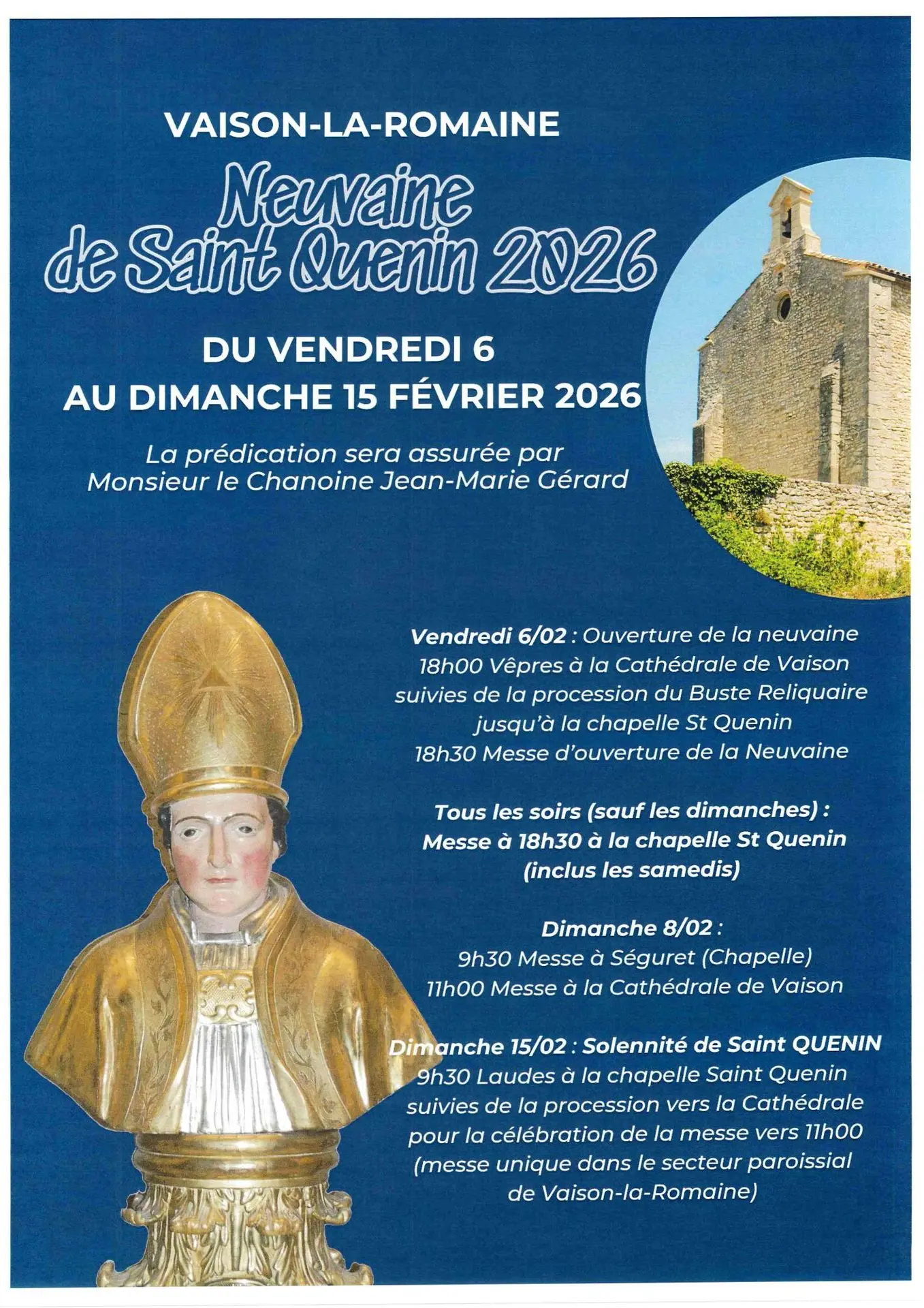 Vaison-la-Romaine celebrates the Saint Quenin Novena and pays tribute to its patron saint with a traditional procession and religious celebrations throughout the event. Preaching will be provided by Canon Jean-Marie Gérard.