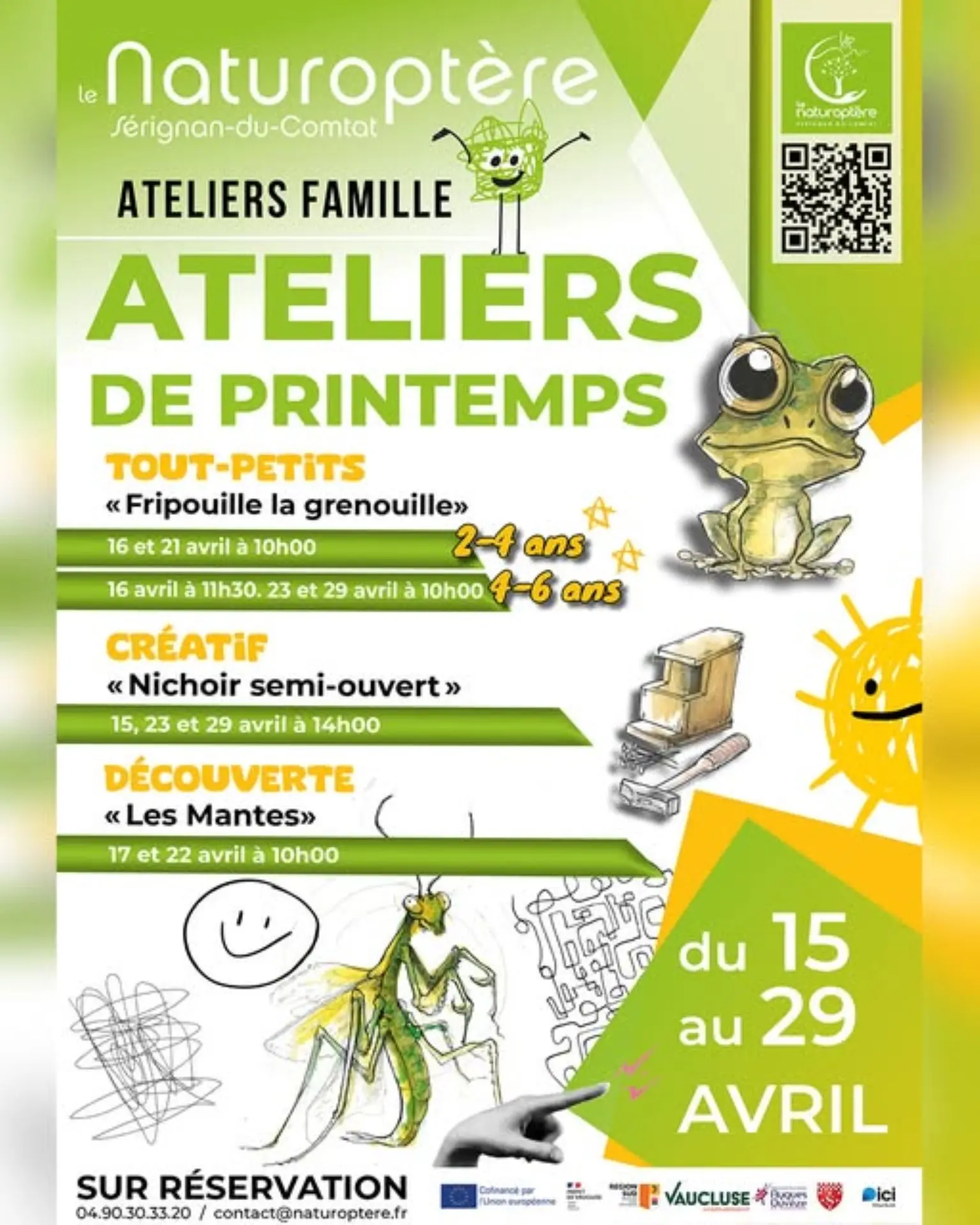 Nature workshops for young and old! Explore the pond with Fripouille the frog, discover fascinating mantises and build your own birdhouse. Fun and sensory activities at the Naturoptère!